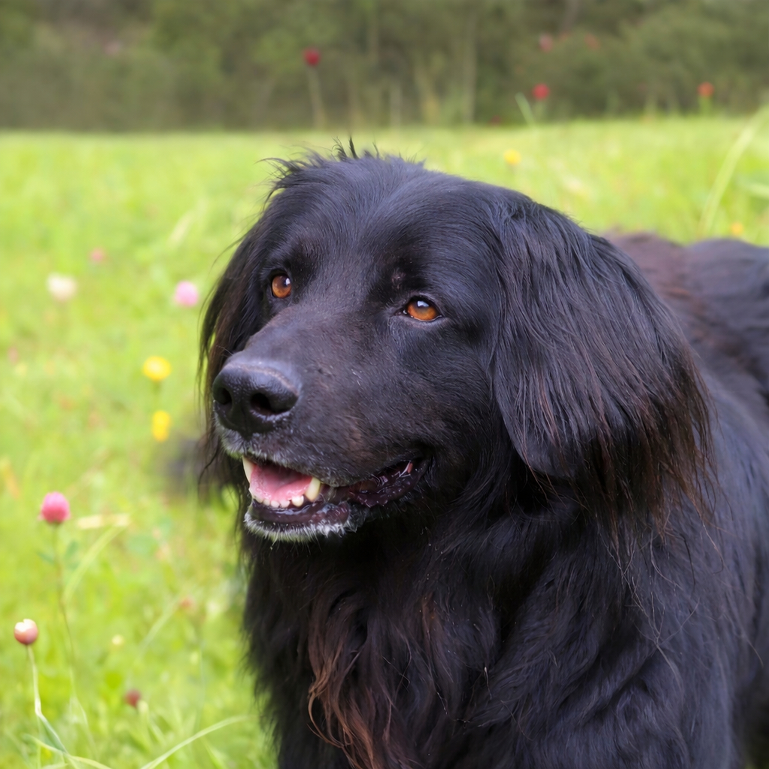 Er diskutiert nicht, er entscheidet. Gelassen und mit dem typischen Hovawart-Blick für alles, was wichtig ist – und auch für das, was eigentlich niemand beachten müsste. Tiefschwarz im Fell, klar in der Haltung. Absolut bodenständig und instinktsicher.